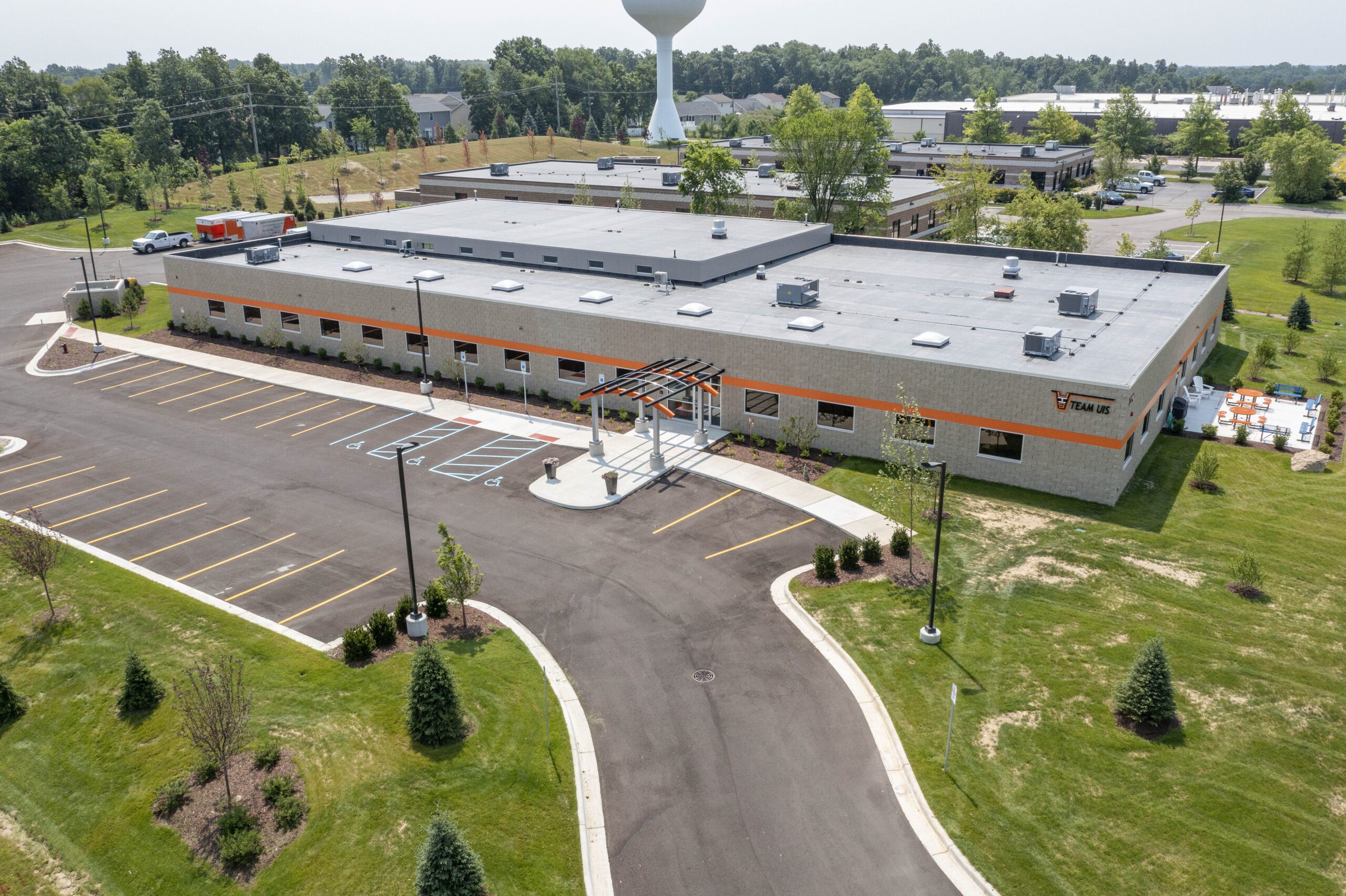 Utilities Instrumentation Services (UIS) project is a 20,000 SF new corporate headquarters located in Dexter, MI. The building includes 10,000 SF of warehouse and 10,000 SF of office space. The structure is ground-up construction for a single-story, masonry-bearing building with large windows and decorative masonry block. Insulated metal sandwich panels are installed on the perimeter warehouse walls. Large electrical insulators are featured at the arched entryway, tying in UIS’s mission “to be a one-stop shop for specialty electrical services